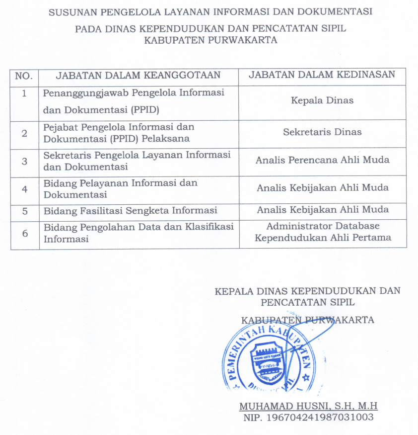 Struktur Pelaksana Pejabat Pengelola Informasi dan Dokumentasi (PPID)